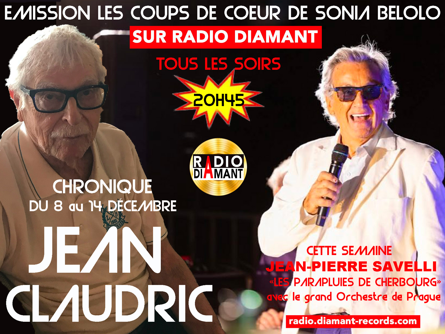JEAN CLAUDRIC TOUS LES SOIRS SUR RADIO DIAMANT DU 1ER AU 7 DÉCEMBRE À 20.45 |