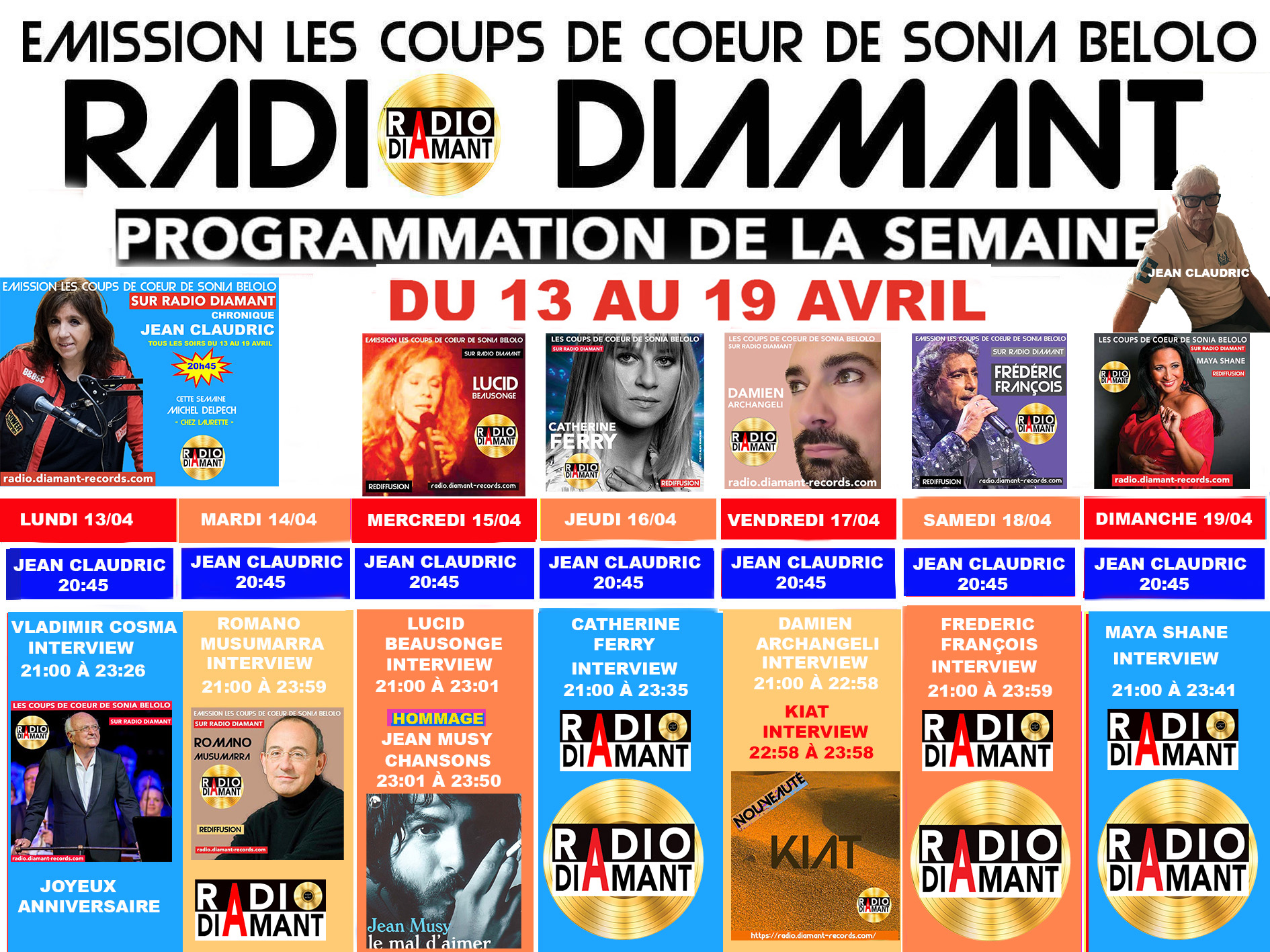 PROGRAMMATION RADIO DIAMANT DU 13 AU 19 AVRIL |