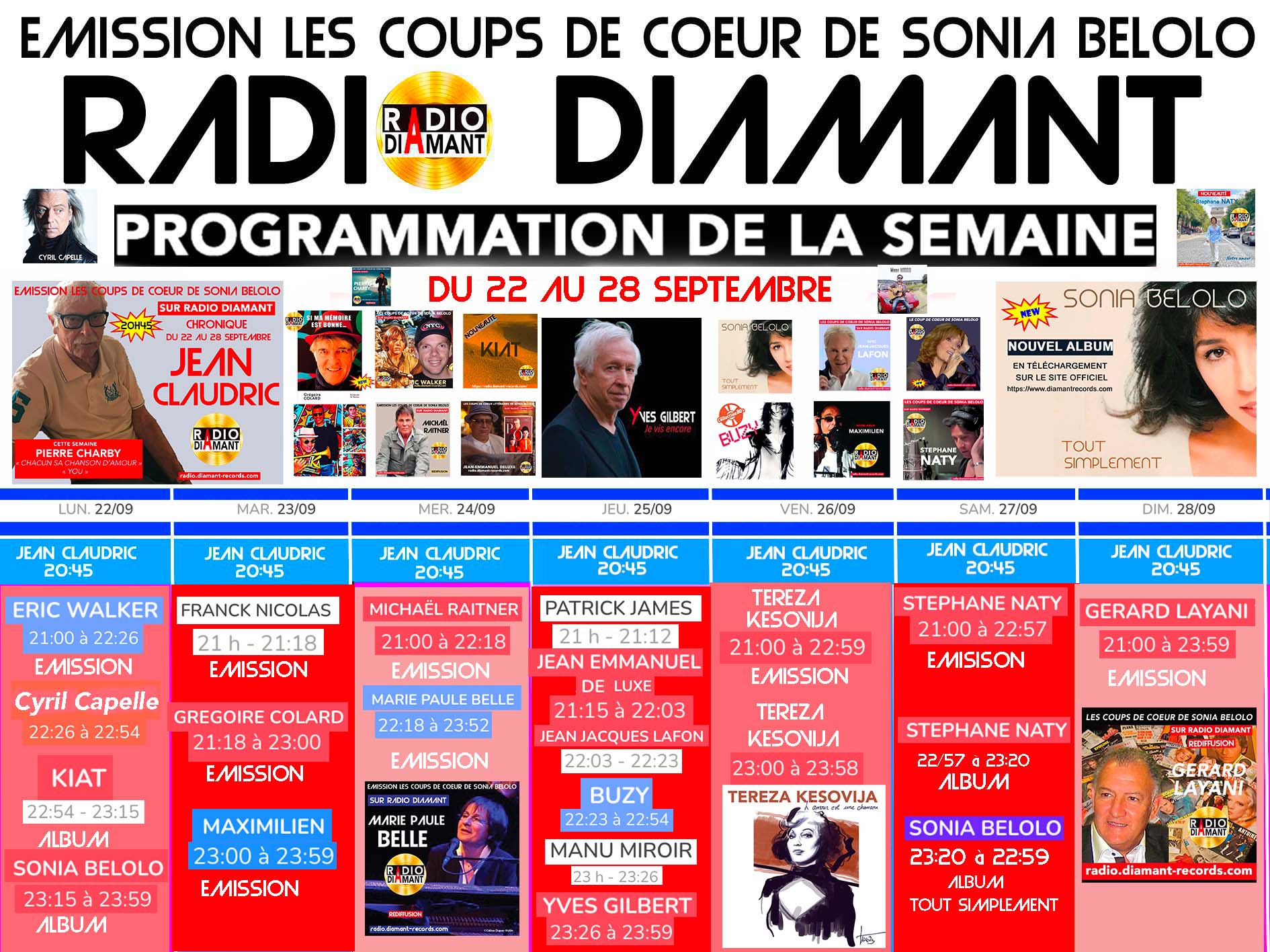 PROGRAMMATION DU 22 AU 28 SEPTEMBRE SUR RADIO DIAMANT |
