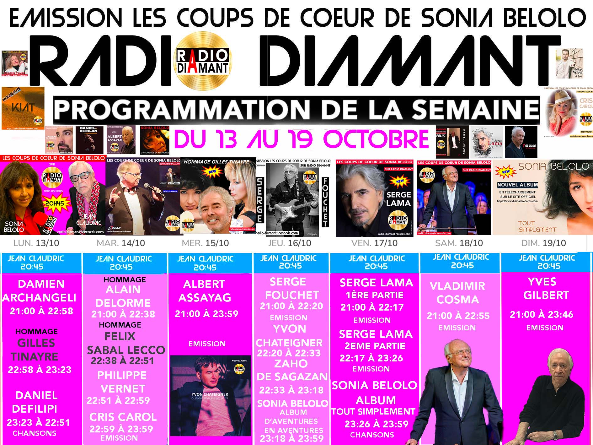 PROGRAMMATION DU 13 AU 19 OCTOBRE SUR RADIO DIAMANT |