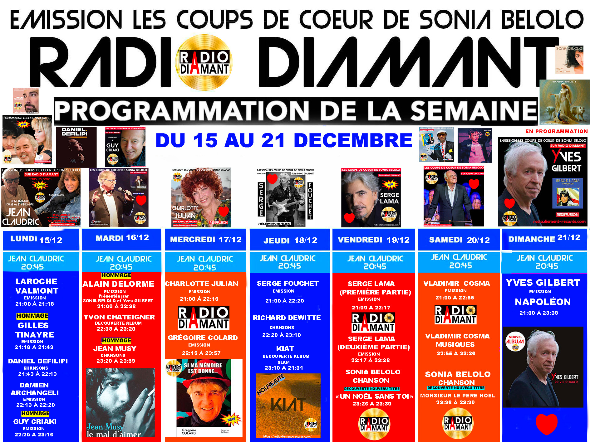 PROGRAMMATION DU 8 AU 14 DÉCEMBRE SUR RADIO DIAMANT CHRONIQUE JEAN CLAUDRIC |